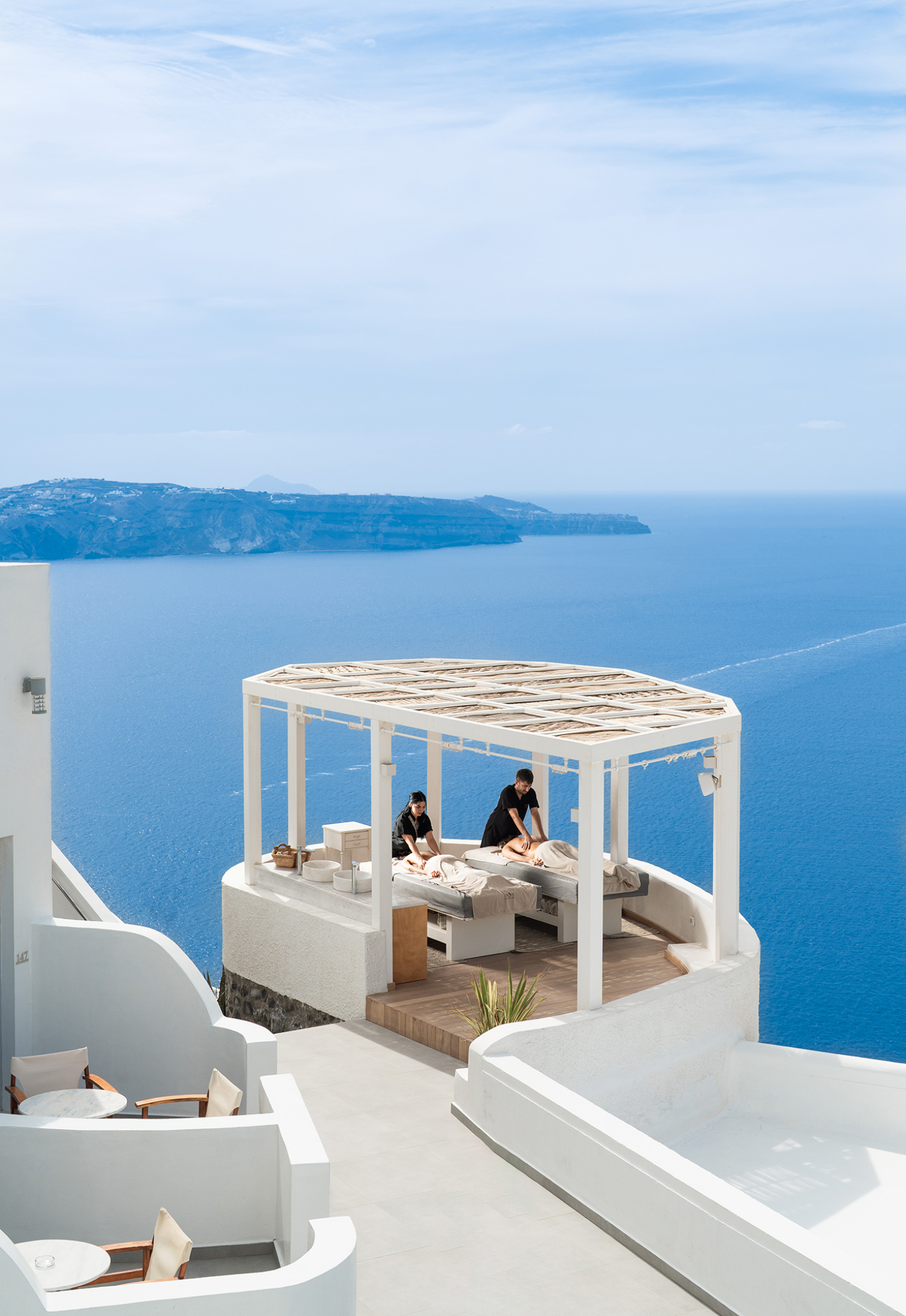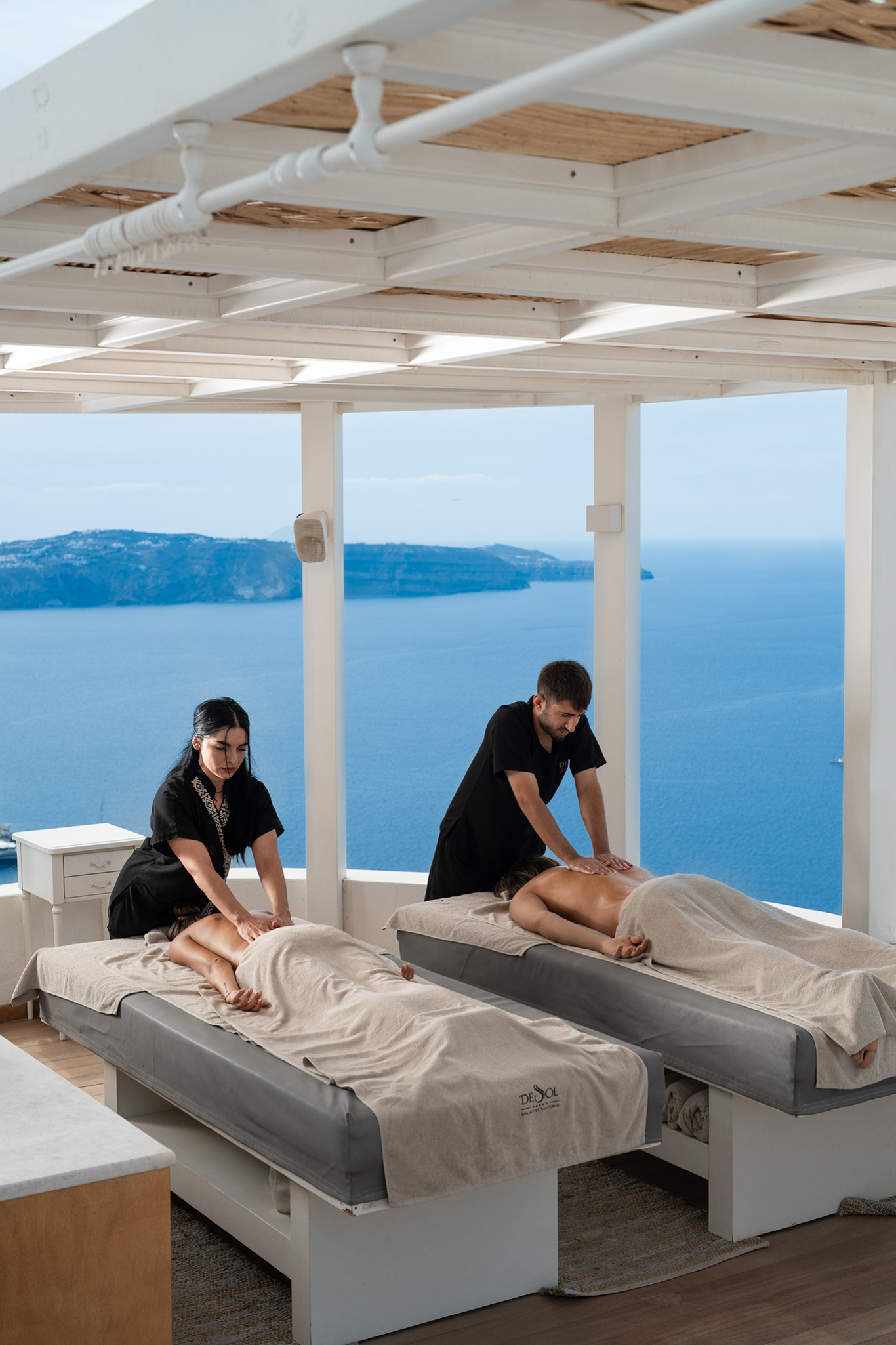 Surrender to unparalleled relaxation with our Volcano View Outdoor Massage, a sublime experience set against the awe-inspiring backdrop of Santorini’s caldera and the endless Aegean Sea. As skilled therapists release tension and invigorate your muscles, feel the warm breeze caress your skin and the tranquil sounds of nature envelop you. This intimate, open-air retreat promises an unforgettable journey of rejuvenation, where body and soul harmonize under the vast Mediterranean sky.